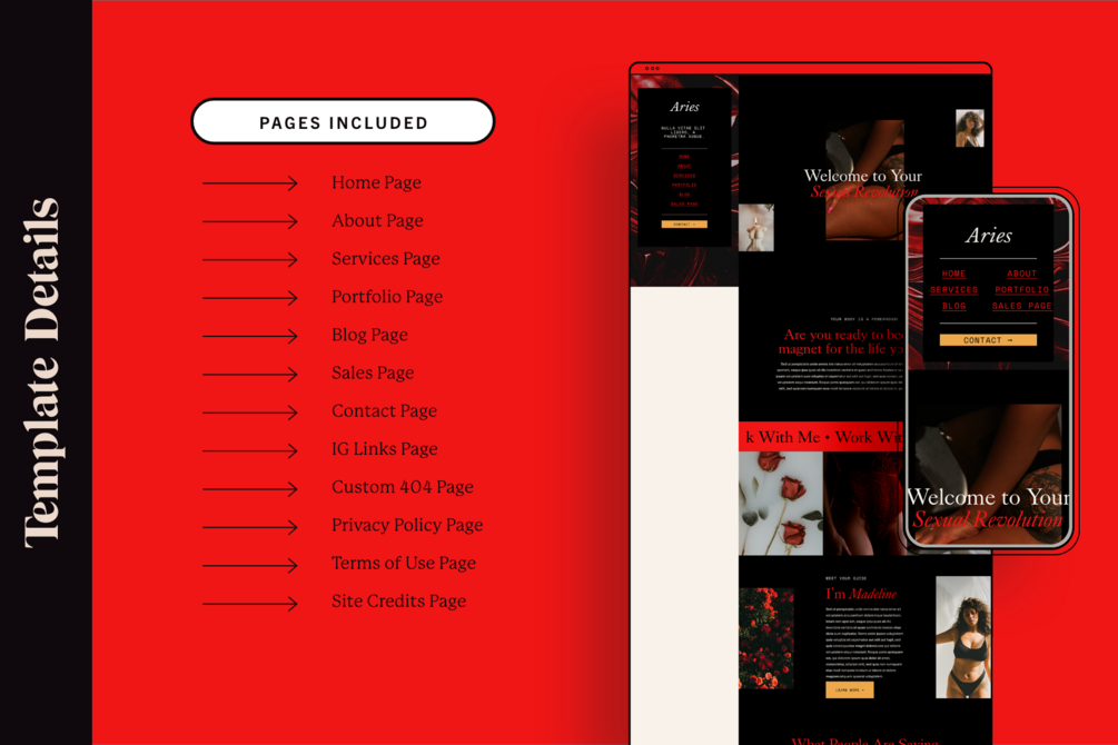 A modern website template for any spiritual entrepreneur. A dose of astrology mixed with design. The Aries Squarespace Website Template is a uniquely intuitive design built to convert for any spiritual coach, podcaster, entrepreneur, brand or small business.